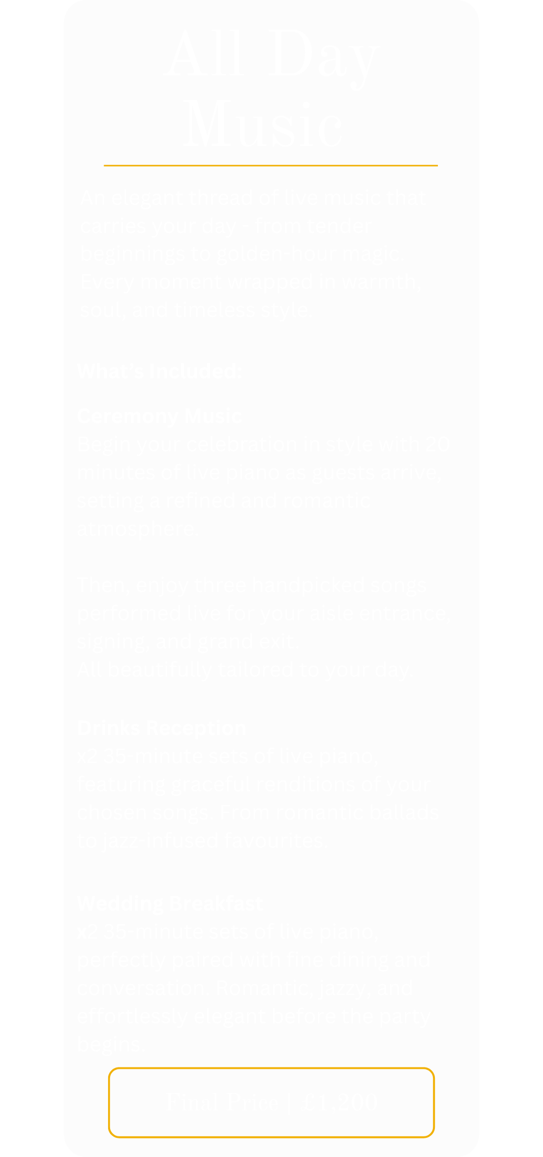 With us, you're not simply booking a performer, you're securing a beautifully managed experience, curated with care, expertise, and quiet precision, so you can enjoy every second of your day stress-free.