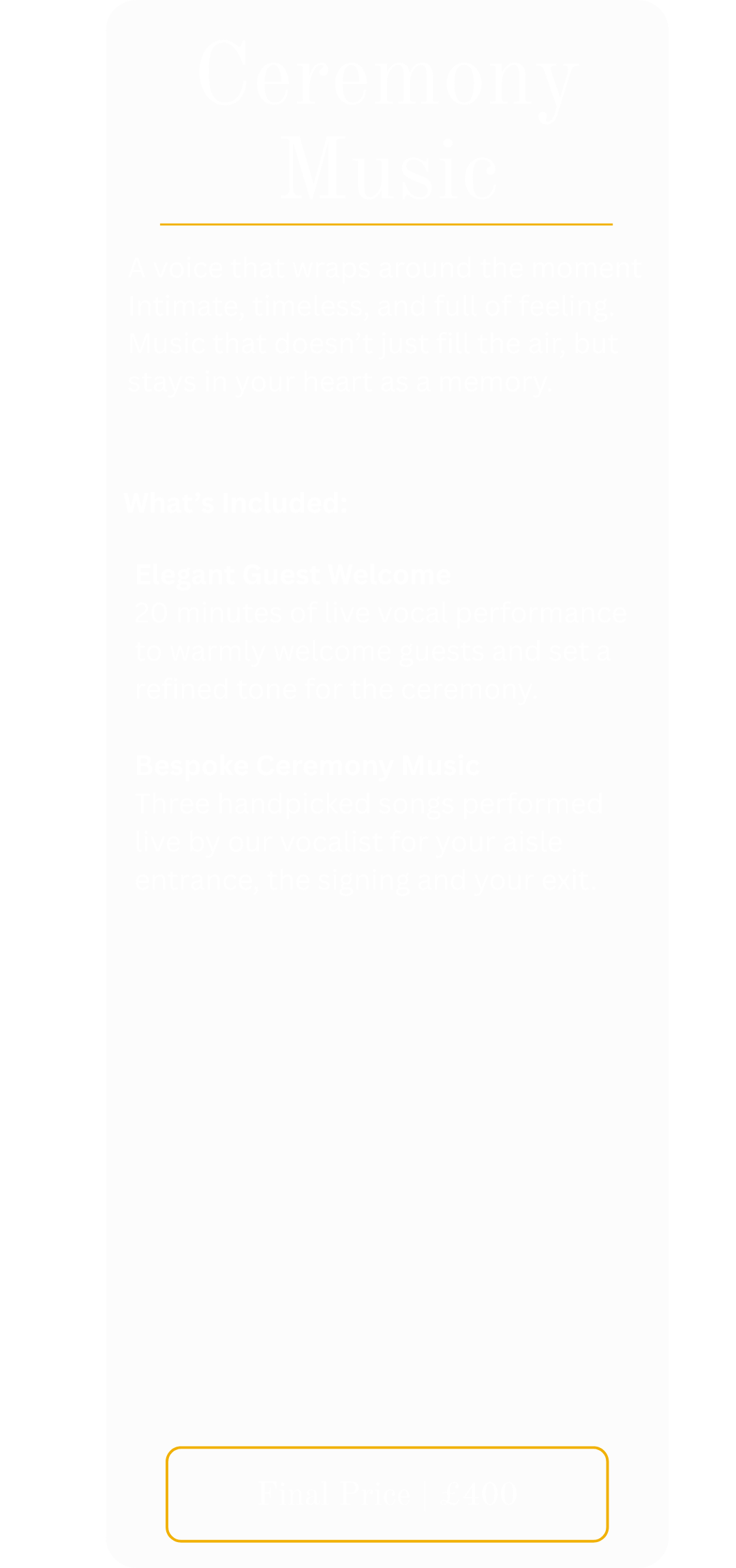 Whether you're dreaming of soft piano melodies drifting through golden-hour light or soul-stirring vocals for your walk down the aisle, we’re here to bring it to life.