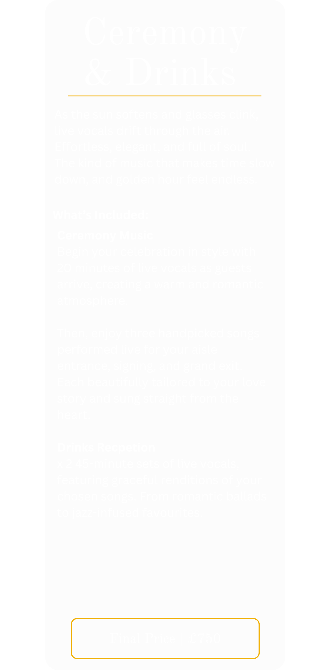 Intimate snippets of our singer’s voice. Perfect for walking down the aisle, sipping champagne at golden hour, and every magical moment in between.